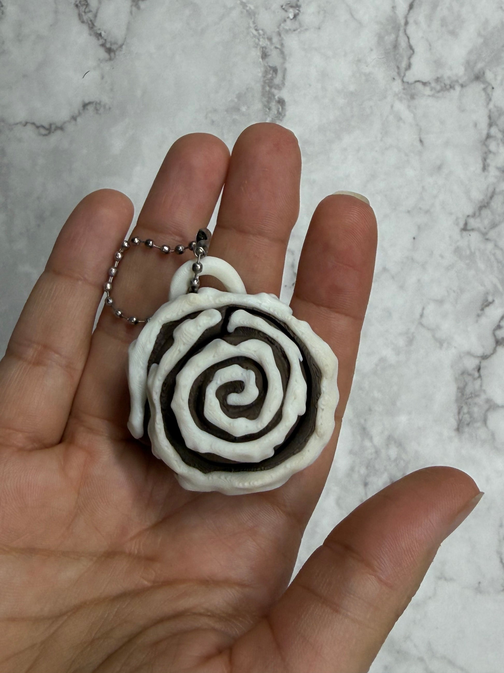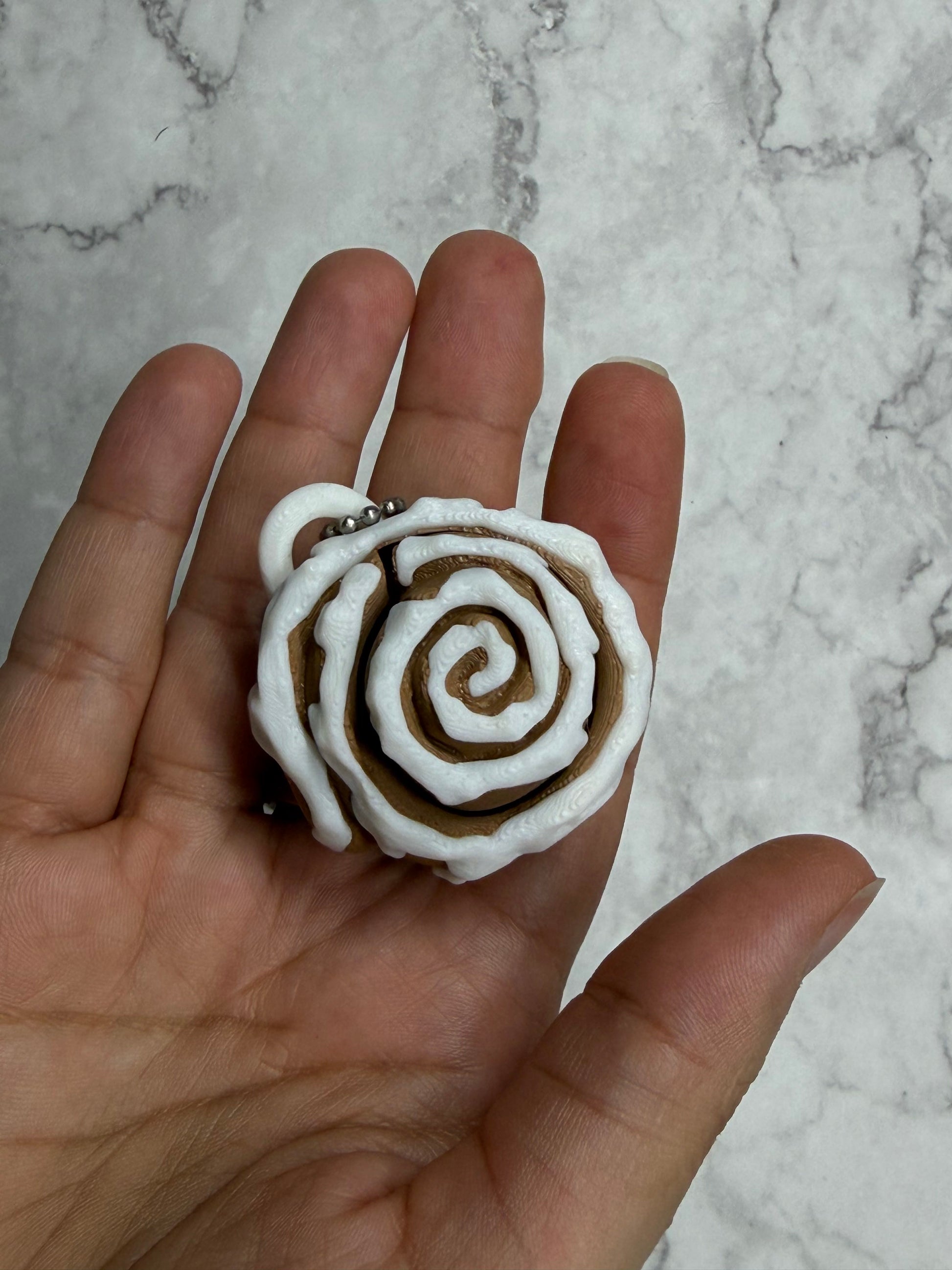 This Cinnamon Scroll Fidget Clicker is 3D printed in house and designed to deliver a satisfying click with every press. Styled to look like a freshly iced scroll, it blends fun design with a calming tactile experience, making it ideal for stress relief, focus, or everyday fidgeting.
